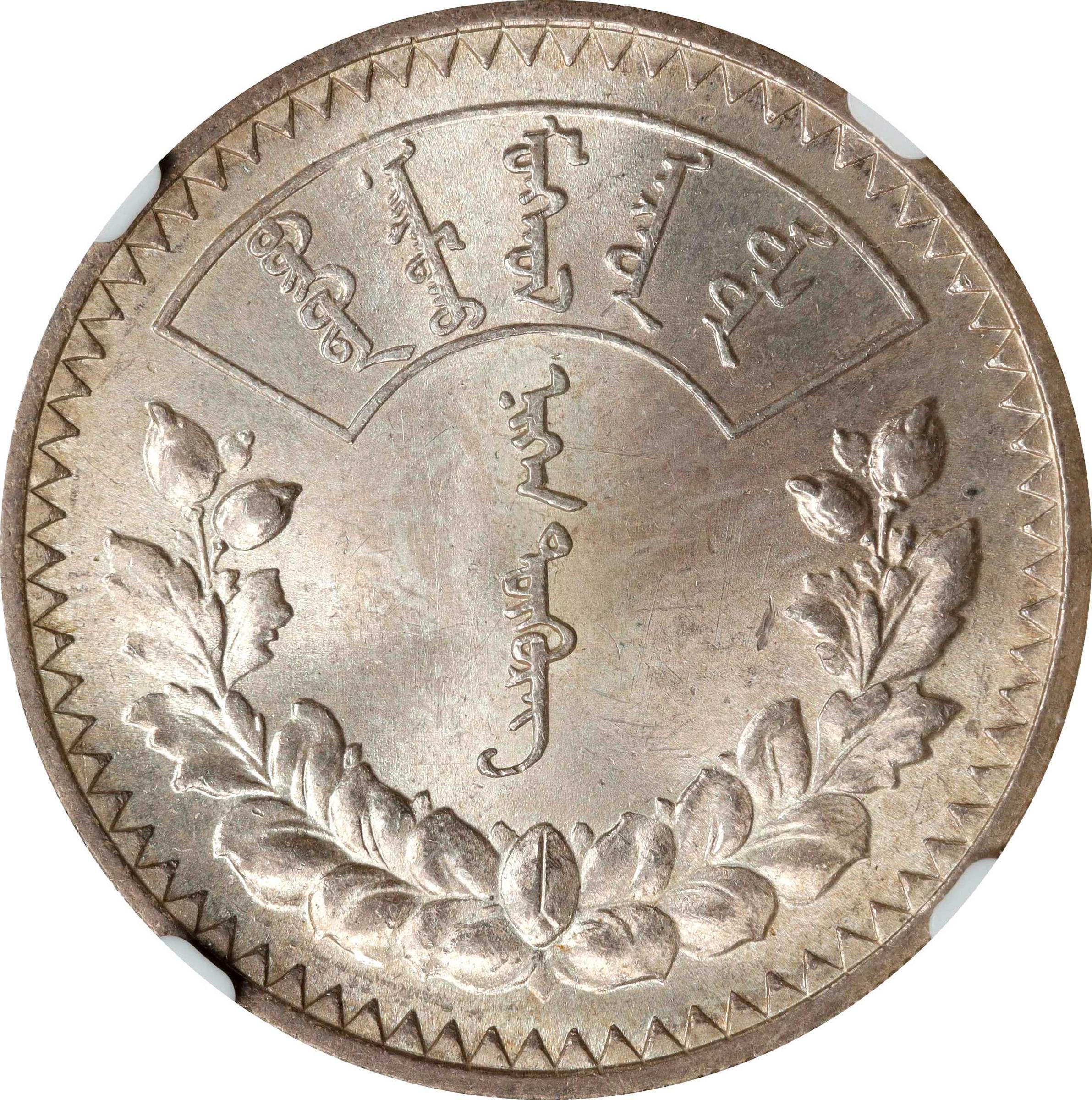1世紀前となる、1925年(イスラム暦AH15年)に発行されたモンゴルのトゥグリク(Tugrik)銀貨です。